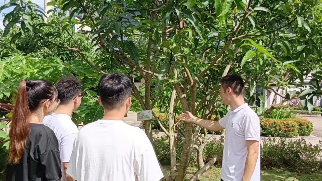 【核心提要】8月1日,ok138cn太阳集团529海南省芒果主栽品种调查暑期社会实践团前往海南儋州农业农村部芒果种质资源圃参观。在科研人员的带领下,初步了解海南省芒果种质资源的基本情况以及产业结构。实践团队共考察了儋州资源圃中600多份芒果种质资源,对海南省芒果种植情况进一步深入了解。强国必先强农,农强方能国强。通过参与本次社会实践活动,为实现乡村振兴贡献新农人的力量。