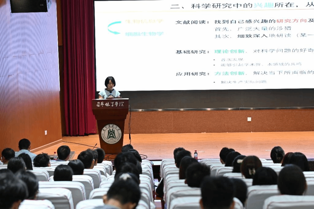 臧婧泽博士以风趣幽默的讲解方式,分享了她在研究生期间的成长经历和心得,指出大量阅读文献是研究生必须要做的一项重要任务。她表示,科研是与全世界的科学家进行赛跑,只有积极追踪并深入了解最新的研究进展,才能在科学研究中保持竞争力。并寄语新生们要以平和坚韧的态度看待面临危机,寻找科研中的机遇。