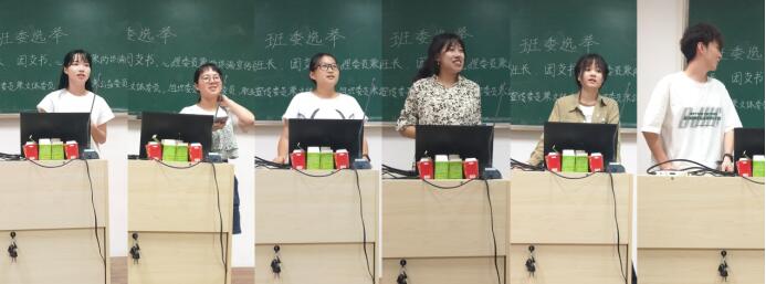 学班和两位暑期班委提前来到教室进行布置工作,进行材料收发整理,装点迎新氛围。会议前学班与同学们亲切洽谈的过程中,气氛变得温馨轻松,同学们彼此攀谈,敞开心扉。会议正式开始的第一个流程为班委竞选。班长和团支书两位同学在暑假担任临时班委的责任与担当得到同学们的再次认可,其余几位班委职位同样竞争激烈,同学们踊跃竞选,希望为班级做出力所能及的贡献。