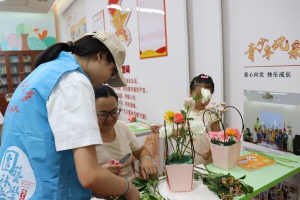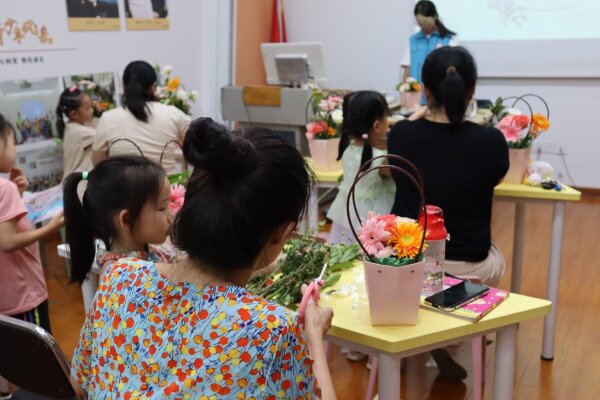 【核心提示】9月10日下午三点,我院张瑜服务队赴玫瑰湾群众活动驿站开展了第二十六期“五育并举,科普‘瑜’你”活动,活动以“香绕指尖,情暖心间“为主题,为15对社区亲子带来了生动的花卉科普与插花艺术课堂。