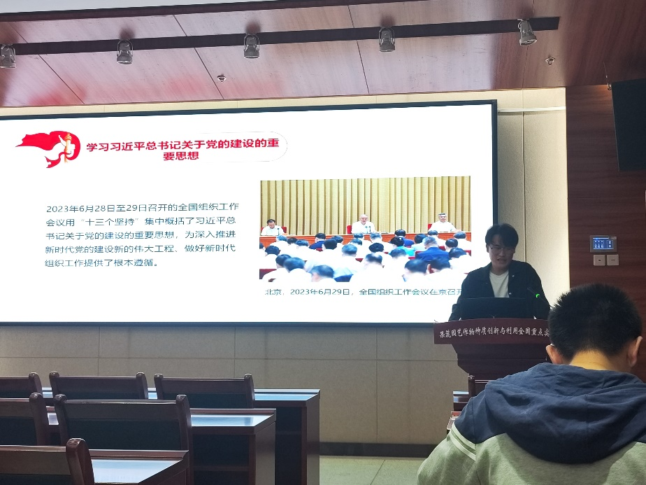10月28日,果树学研究生第四党支部在园林南楼204会议室开展十月主题党日活动,会议由党支部纪检委员唐金同志主持。