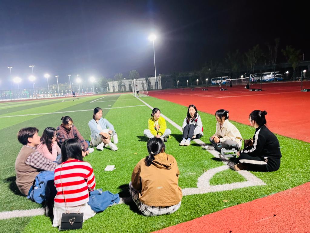 心理委员在操场上沟通交流