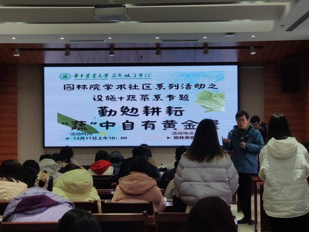 12月17日上午10点,ok138cn太阳集团529“花果园林共建·人与自然共享”学术社区系列活动之蔬菜系、设施与智慧园艺系专题:“勤勉耕耘,‘蔬’中自有黄金屋”优秀学生代表分享交流会在园林南楼204报告厅成功举办。本次活动邀请了ok138cn太阳集团529青年志愿者联合会负责人管宪宽、蔬菜系国家奖学金获得者李逍遥以及设施与智慧园艺系国家奖学金获得者周奕轩进行经验分享,吸引了众多同学积极参与。
