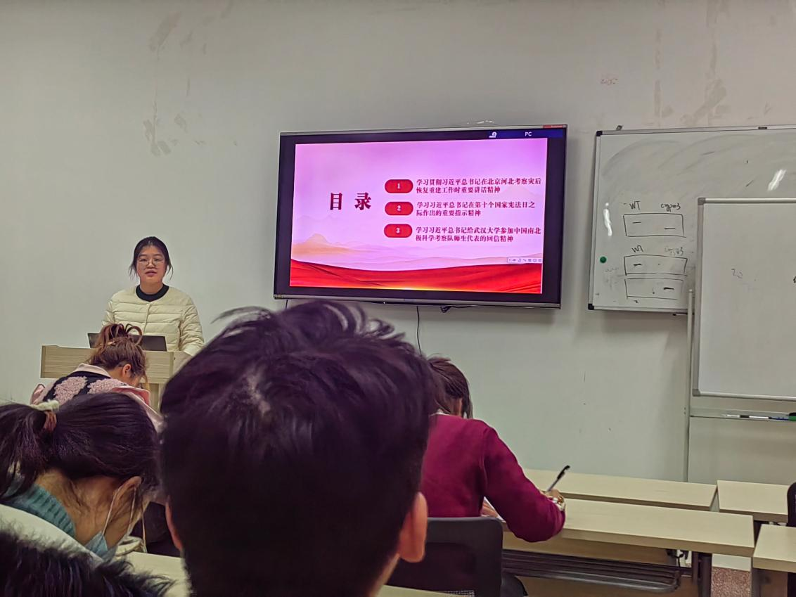 会议伊始,支党部书记张梦晴带领支部党员学习贯彻习近平总书记在北京河北考察灾后恢复重建工作时重要讲话精神,习总书记在考察时强调:要始终坚持以人民为中心,坚持系统观念,坚持求真务实、科学规划、合理布局,不断提升防灾减灾救灾能力。随后学习习近平总书记在第十个国家宪法日之际做出的重要指示精神。宪法是治国安邦的总章程,是我们党治国理政的根本法律依据,是国家政治和社会生活的最高法律规范。