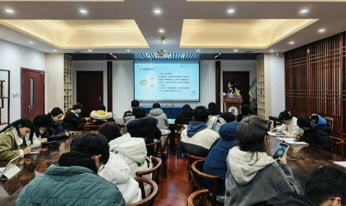 接着,陈雪丽以一场生动的科学讲座,揭示了茶叶的奥秘。她从茶叶的分类、冬日适宜茶饮的推荐,以及园林院特色茶品三个方面展开介绍。陈雪丽以六大茶类的发酵程度与茶香的关系为切入点,使同学们对绿茶、黄茶、白茶、青茶、红茶和黑茶这六大茶类的特性有了全面的认识。她依据时节特点,建议同学们在冬季饮用熟普洱和桂圆红枣茶以暖胃驱寒,同时还着重介绍了我院黄友谊、倪德江两位教授课题团队研发的特色茶品,如:伍家台贡茶、赤壁青砖茶、老君眉茶等。这些茶品不仅彰显了产地特色,还融合了科研智慧,堪称优异之作。