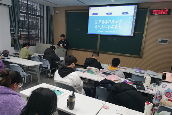 【核心提示】为帮助学生更全面、更深入地了解职业发展和生涯规划,2023级果树1班于1213日在一教108教室成功举办了一场以职业规划,引领未来为主题的班会。此次活动旨在为同学们提供实用的职业指导,助力他们在未来的职业生涯中迈出成功的第一步。