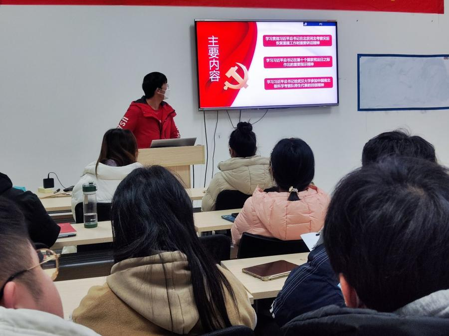 之后,蔡光华同志又向大家介绍了习近平总书记在第十个国家宪法日之际作出的重要指示精神,强调了宪法在治国理政中的重要作用。在习近平总书记给武汉大学参加中国南北极科学考察队师生代表的回信精神的学习中,党员同志们认识到了要始终胸怀“国之大者”,接续砥砺奋斗,练就过硬本领,勇攀科学高峰。