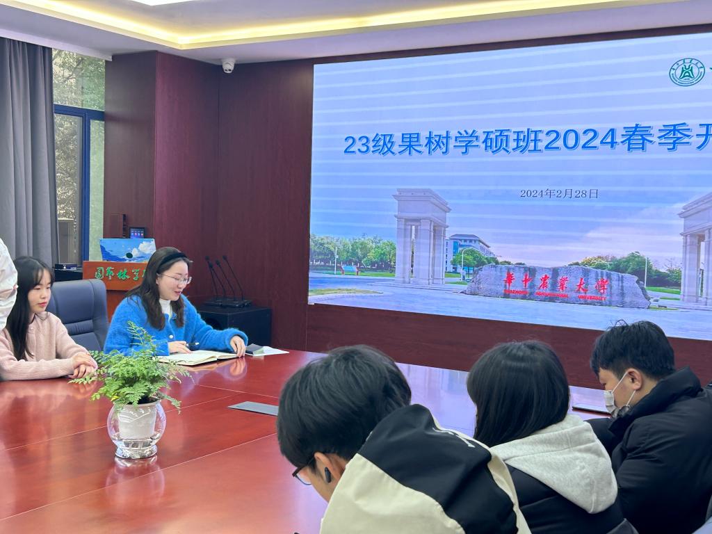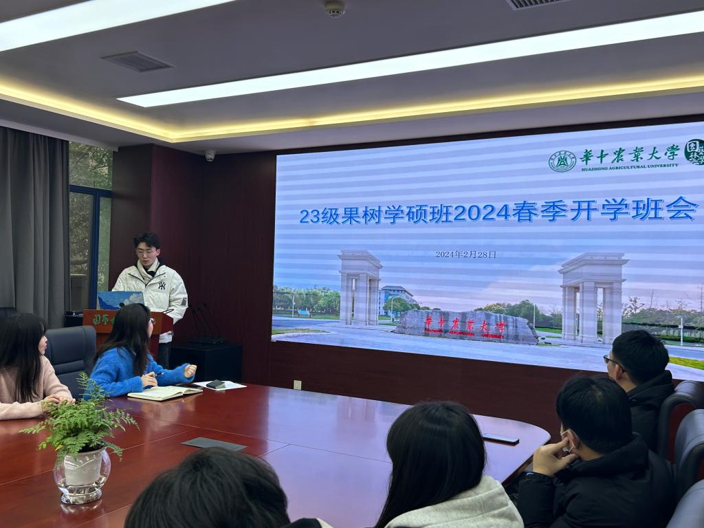 2月28日下午,ok138cn太阳集团5292023级果树学硕班于园林北楼219会议室召开了2023-2024第二学年第一次班会,由果树学硕一班班长王鹤冰和果树学硕二班班长张帆共同主持。