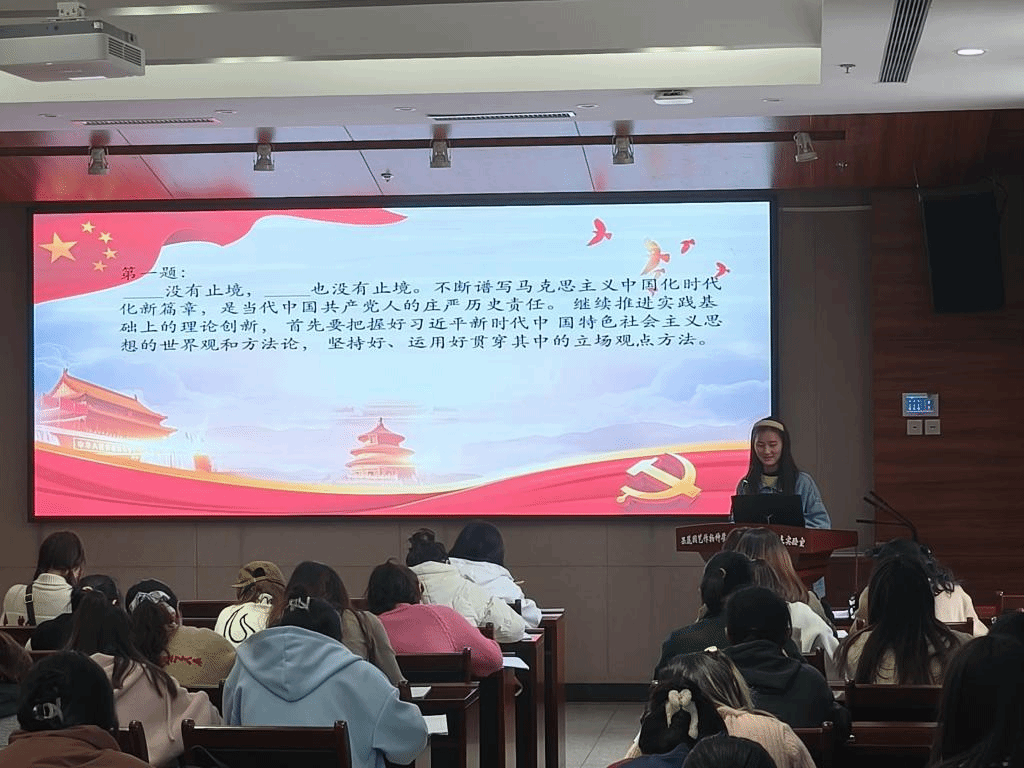 以赛促学,激发参与度。知识问答环节将活动推向高潮。题目围绕党的基本理论给出,同学们积极参与问答,不仅检验了学习成果,也进一步激发了大家的学习兴趣和参与热情。