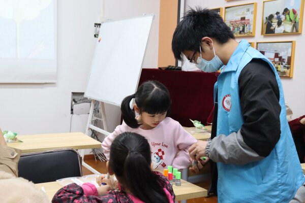 活动开始,志愿者文鑫向小朋友们抛出了一个问题:“大家对清明节了解多少呢?”“清明节要去扫墓”“清明是二十四节气之一”……小朋友们积极回答,分享自己的认知和理解。文鑫同学引用杜牧的《清明》,讲解了清明节的得名之由和节日习俗等内容。文鑫还向小朋友们分享了几张来自华农的春日“美照”,小朋友们准确而快速地喊出了图片中植物的名字,“郁金香!”“杨柳!”“樱花!”“桃花!”。