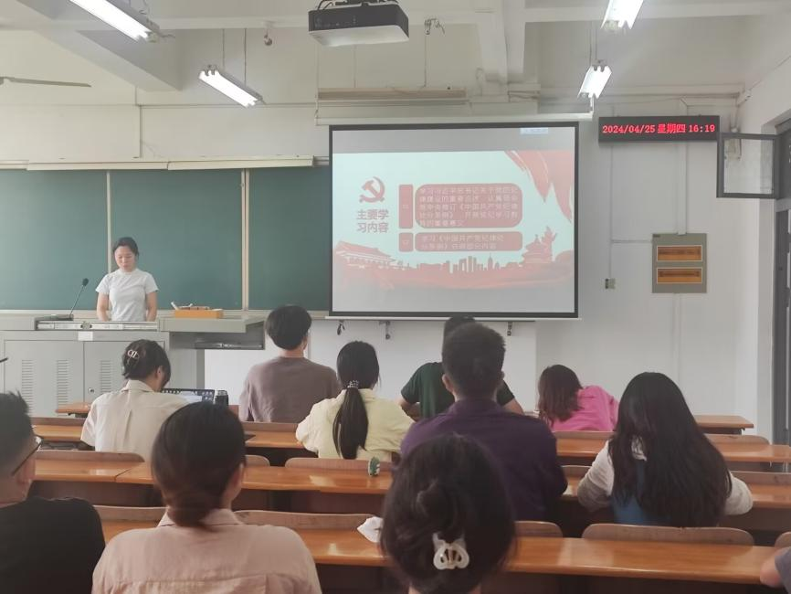 4月25日,学院各学生党支部利用周四下午集中学习时间,深入学习习近平总书记关于党纪学习教育的重要讲话和重要指示精神、党中央新修订的《中国共产党纪律处分条例》(以下简称“条例”)等内容,聚焦主题,学研结合,扎实开展党纪学习教育主题党日活动。