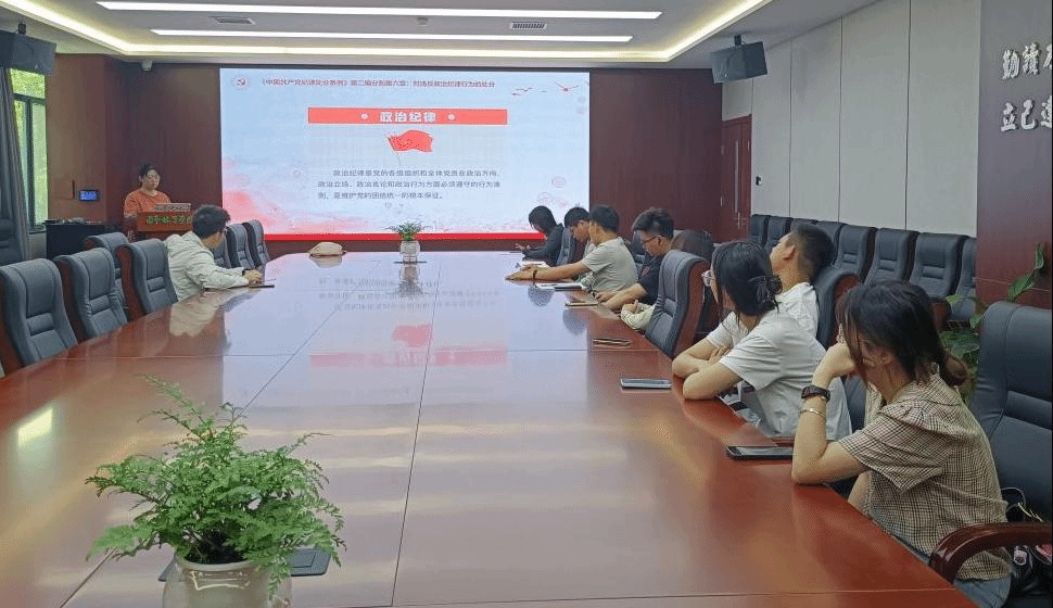 会议伊始,严玉阳同志带领大家学习了《中国共产党纪律处分条例》第二编分则第六章、第七章、第八章部分内容。严玉阳谈到,纪律是党的生命线。作为规范党组织和党员行为的基础性法规,《条例》在党内法规体系中发挥着重要作用。严玉阳同志对此强调,党员要深入学习领会《条例》,增强遵规守纪自觉。