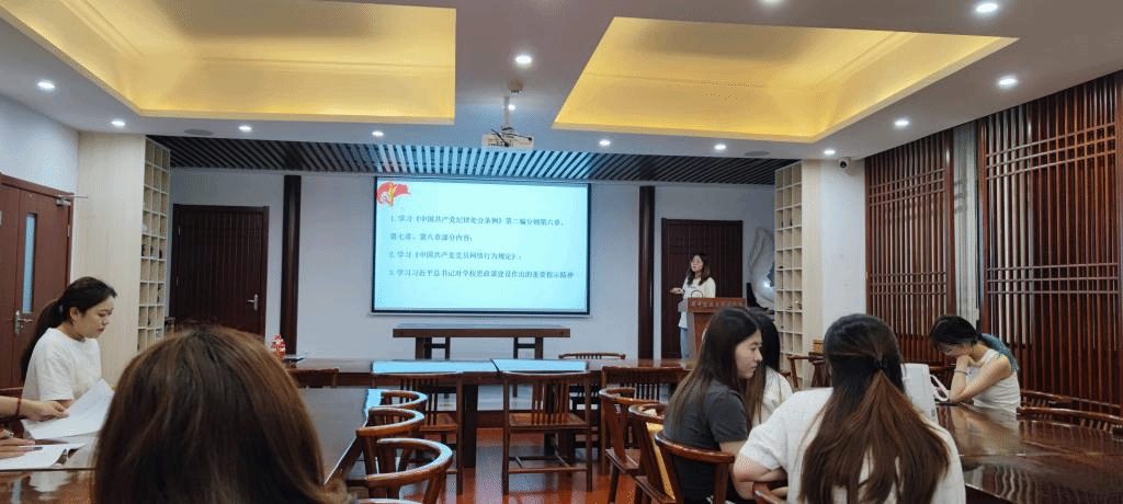 会议伊始,毕璐、吴盈讲解了《中国共产党纪律处分条例》第二编分则第六章、第七章、第八章部分内容,包括违反政治、组织、廉洁纪律的行为,并告诫全体党员应严格遵循党的规章制度。