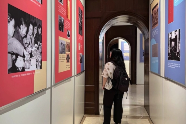 队员在观看革命时期宋庆龄事迹