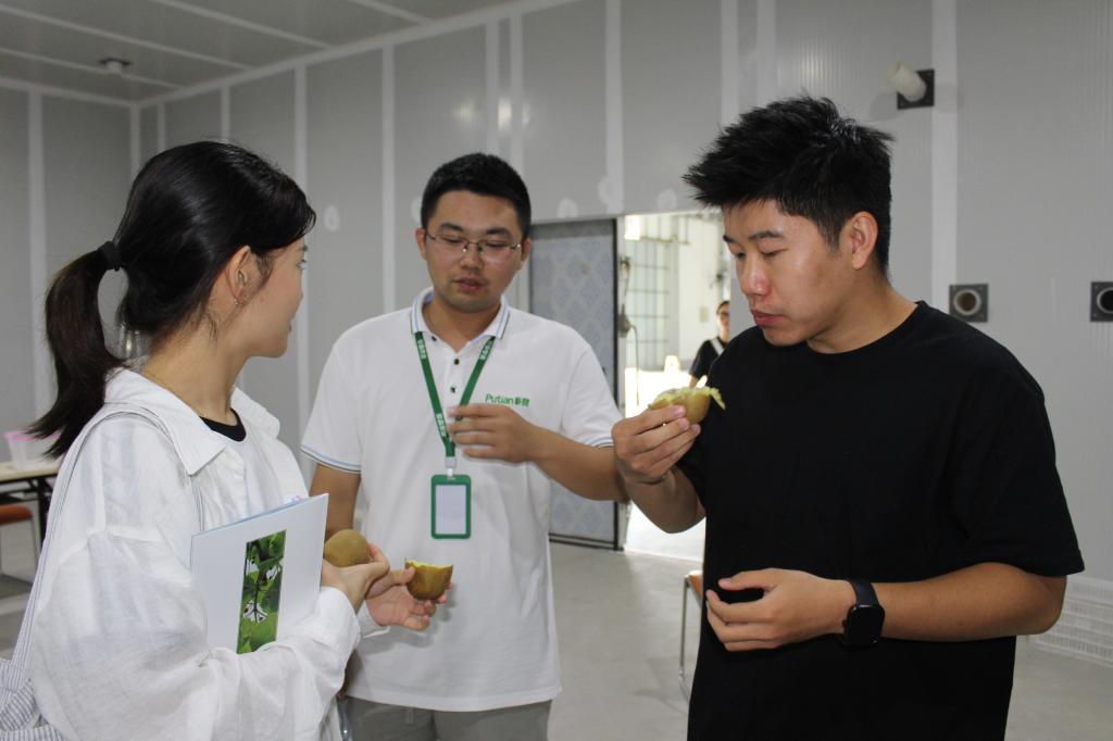 随后,实践团成员们走进了现代化的冷库。这里配备了先进的猕猴桃即食控熟设备,由ok138cn太阳集团猕猴桃采后团队研发而成。这些设备不仅大幅缩短了猕猴桃的控熟时间,还保证了果实的口感与品质,解决了消费者长期以来的“硬果不能吃,软果不耐贮”的困扰。经过控熟处理的猕猴桃达到可食用状态,实践团队成员张靖宗在品尝后,竖起了大拇指,并表示:酸甜可口,风味浓郁,回味悠长。据了解,即食果实在市场上的售价为30元/斤,与未控熟的果实相比,价格提升了三倍,提高了公司和种植户的收益,增强了果农种植猕猴桃的信心。然而,经过问卷调查后,团队成员们发现,尽管猕猴桃即食控熟技术具有较大的优势,但在实际应用中仍需加大宣传与推广力度。