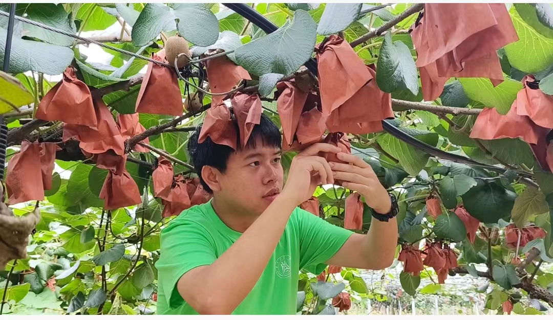 园艺2022班黄选旺体验猕猴桃采摘(通讯员 刘琳凤 摄)