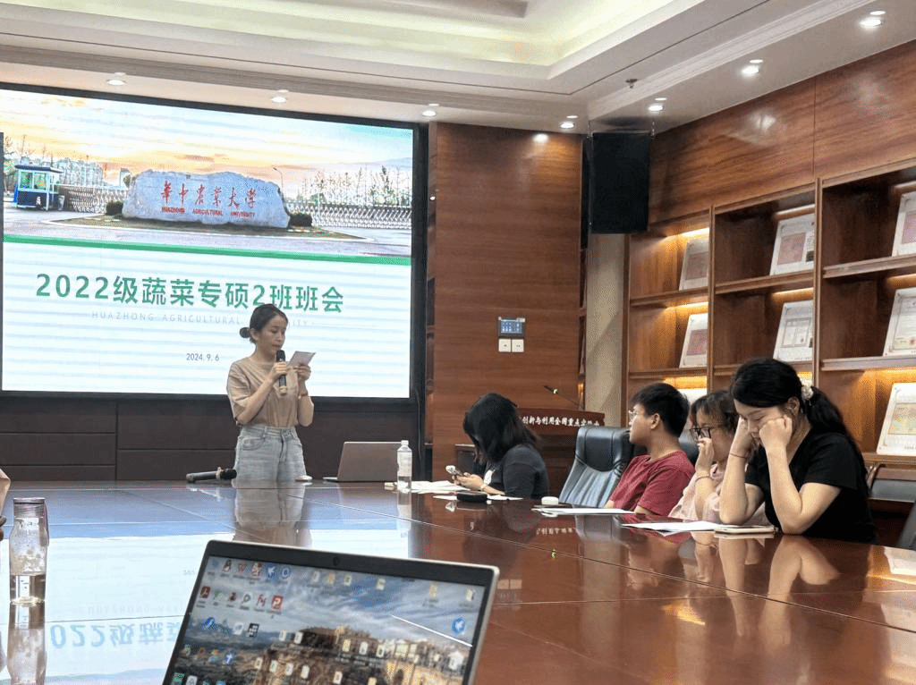 农艺与种业蔬菜专硕班会上,团支书正在主持会议