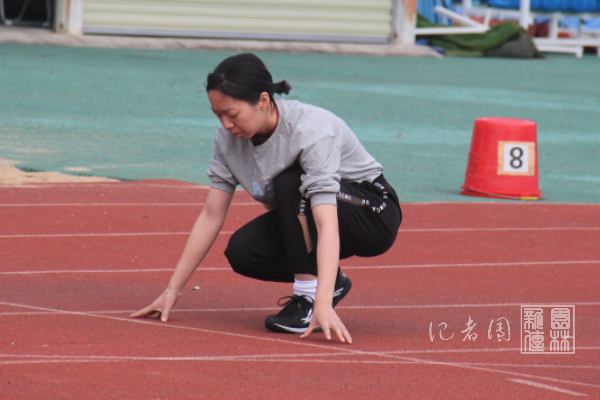 比赛正式开始前,运动员们均进行了积极热身。我院运动员金梦蝶神态严肃,她反复活动身体、拉伸肌肉,希望将自己调整到最佳状态。上场后,她进行了试跑,跨越第一个栏障,为即将到来的比赛积蓄力量。