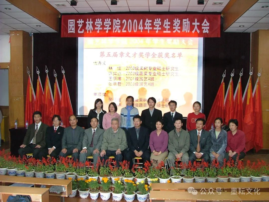 2004年10月17日第五届章文才奖学金隆重颁奖,前排左一为杨仁海