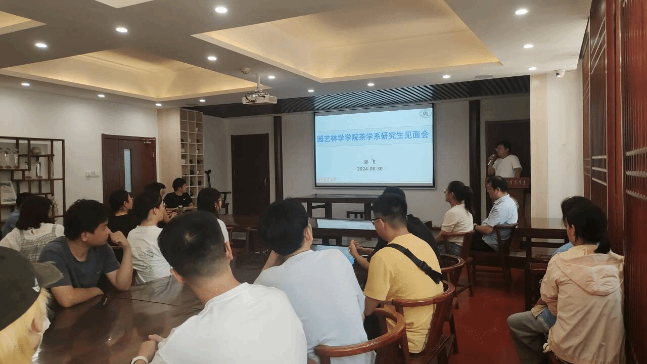 8月30日,“茶韵茗香”——2024级茶学系学科前沿交流暨研究生新生师生见面会于北楼耕读茶室举行,会议由郭飞老师主持。