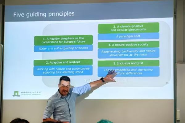 瓦赫宁根大学环境研究学院教授Tim van Hattum提出了2120年欧洲未来自然的发展态势设想。他强调应对气候变化、土壤退化和生物多样性下降等问题,必须借助系统性设计理念,推动生态农业、绿色基础设施和水文循环恢复的协同转型,构建韧性更强的未来农业与自然系统。教授同样指出,未来欧洲的可持续性需建立在健康的水文与土壤系统之上,要保持水系通畅、恢复涵养区、保护湿地与河岸生态带,确保地下水补给与洪涝调控机制有效运行,从根源上改善生态韧性。