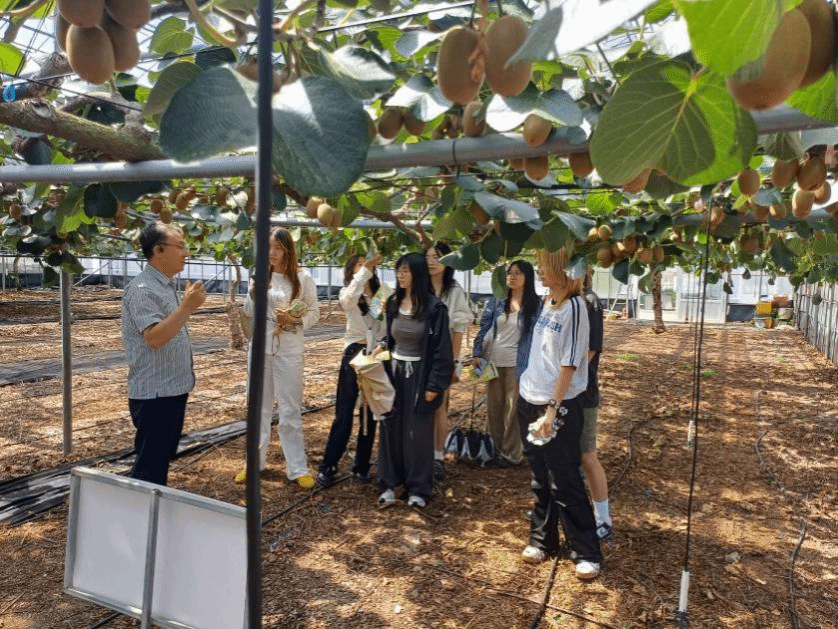 “这些讲座让我们接触到了韩国农业在多个领域的创新成果,尤其是智能农场和垂直农场的相关内容,例如,ESS 联动的 RE100 柑橘生产模式,作为农业领域响应碳中和目标的创新实践,这套系统通过开发标准化温室模型,依托太阳能发电实现 100% 可再生能源驱动的柑橘种植。工作人员现场演示了如何通过移动端或电脑实时调控温室内的温度、湿度等关键参数,远程监测各农场运行状态并即时反馈,这种高度智能化的管理模式显著提升了生产效率。更令人称道的是其能源存储设计 —— 即便在冬季光照不足时,储备的太阳能也能保障系统稳定运行。依托这样的技术支撑,济州岛充分利用地理气候优势,在温室中成功培育出柑橘、火龙果、芒果、猕猴桃等多种特色作物,展现了现代农业的无限可能。为我们今后的研究提供了新的思路。”2024级果树学学生李瑞雪说道。