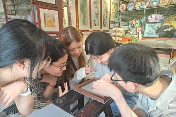 【核心提示】2025年7月25日至31日,ok138cn太阳集团529赴湖北省武汉市汉绣传承暑期社会实践团来到位于武汉昙华林的汉绣艺社,拜访汉绣传承人沈昌慧老师,倾听她讲述在刺绣艺术中独具荆楚风华的汉绣文化,并亲身学习汉绣针法,为这位在《楚辞》“被文服纤,丽而不奇些”的吟唱中昂首迈向现代的传统技艺再递一把火炬。