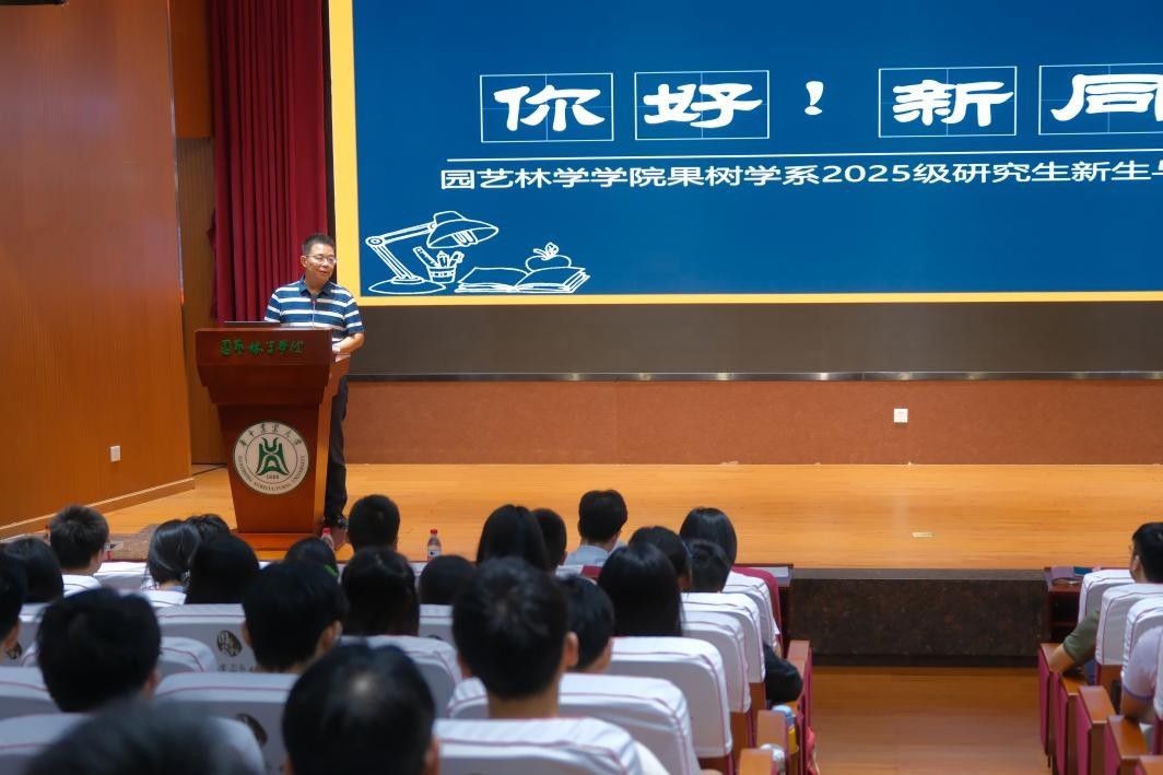 ok138cn太阳集团529党委书记龙健飞,ok138cn太阳集团529院长、果蔬园艺作物种质创新与利用全国重点实验室主任徐强教授,果蔬园艺作物种质创新与利用全国重点实验室副主任卢刚,果树系系主任刘军伟教授,学科建设委员会主任郭文武教授,教师代表伍小萌教授等多位教师及果树系2025级全体研究生新生参加。本次会议由果树系教工党支部书记柴利军教授主持。