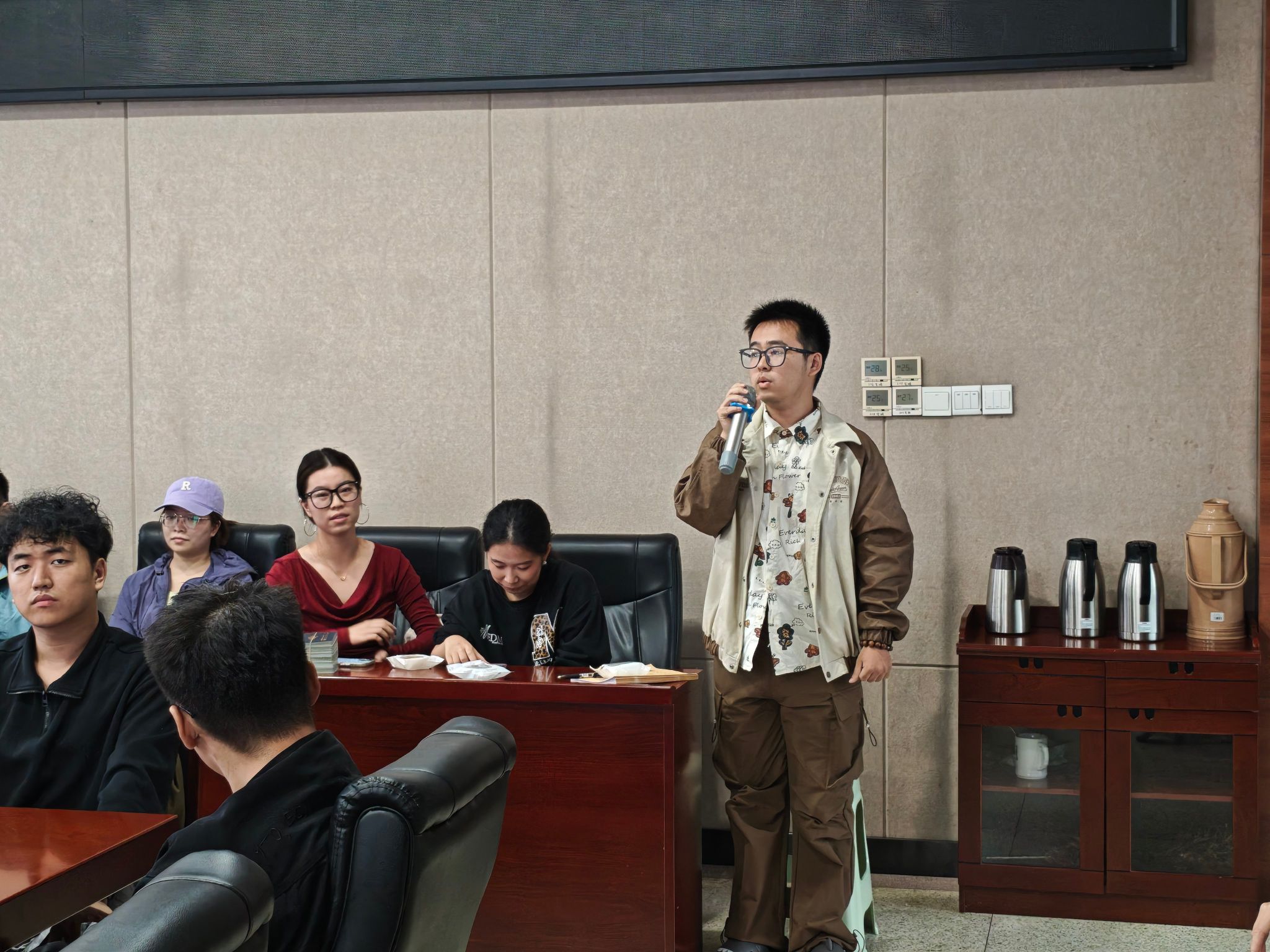在自我介绍环节,来自14个硕士班和3个博士班的班级负责人依次亮相。他们分享了自己的家乡、兴趣爱好和研究方向等,现场气氛轻松热烈。不少班长表达了加强跨班级交流、共同组织活动的意愿,展现了新生学生干部的活力与担当。