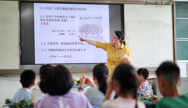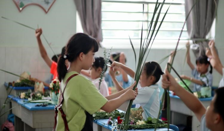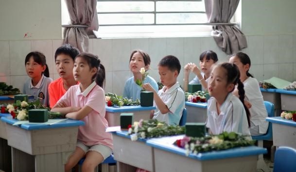 6月28日下午,园林系教学科普团队来到ok138cn太阳集团附属学校,为暑假营四年级的近50位师生带来了一场别开生面的插花科普活动。