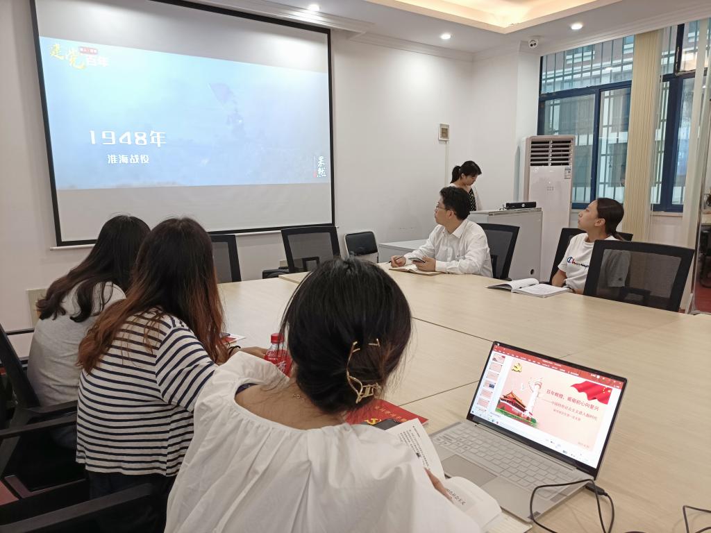 此次会议由支部书记陈麒慧主持,会议分为三个部分:忆百年党史、看新时代变化、交流研讨。组织委员赵阳首先通过一段视频带领参会人员简要回顾了中国共产党一百年来对中华民族和中国人民所作出的伟大贡献、创造的伟大历史、形成的伟大理论、铸就的伟大精神,阐释了革命先辈们在党的坚强领导下,在红色精神激励下,走过的艰辛历程。紧接着,赵阳同志以一段视频带领大家感受了新时代背景下我国发生的飞跃性变化。在视频播放结束后赵阳分享了《中国共产党简史》第十章的内容,细致讲述了中国特色社会主义进入新时代阶段所取得的成就。