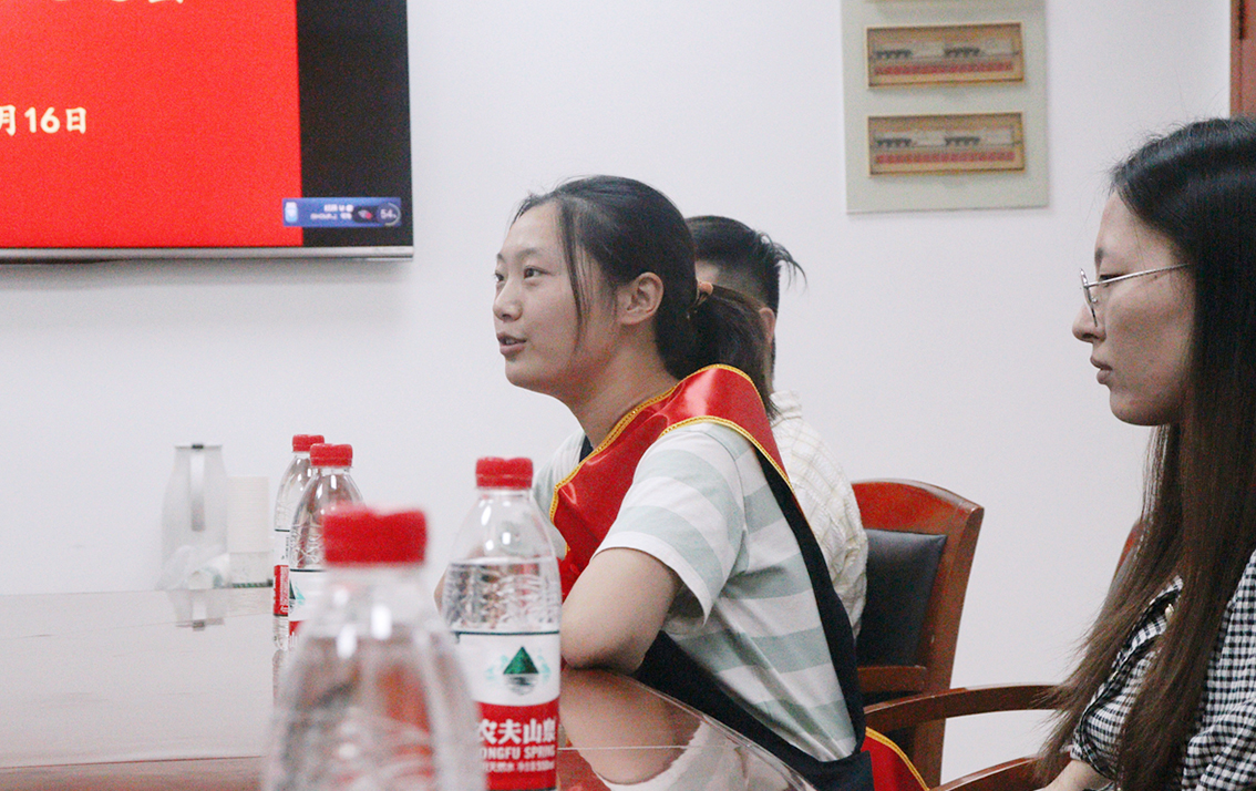 会上,蔡江代表学院为温宇鑫送上大红花,希望她能够多立新功,为学院争光。辅导员克木老师送给她一本《苦难辉煌》,赞扬了她的坚定和勇敢,并预祝她在部队一切顺利。简雪燕用自己的亲身经历告诉温宇鑫,态度决定一切,努力就有收获。她表示,在部队里需要摆好态度,定好目标,向他人虚心求教,并发掘自己的闪光点,不断为了自己的目标而奋斗,就一定会有所收获。