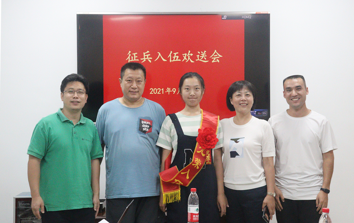 9月16日下午,学院于园林北楼215会议室举行秋季征兵入伍欢送会。入伍的园艺19级本科生温宇鑫、院党委副书记蔡江、19级辅导员克木、退伍同学代表简雪燕、温宇鑫的父母及在校的好友参加了本次活动。