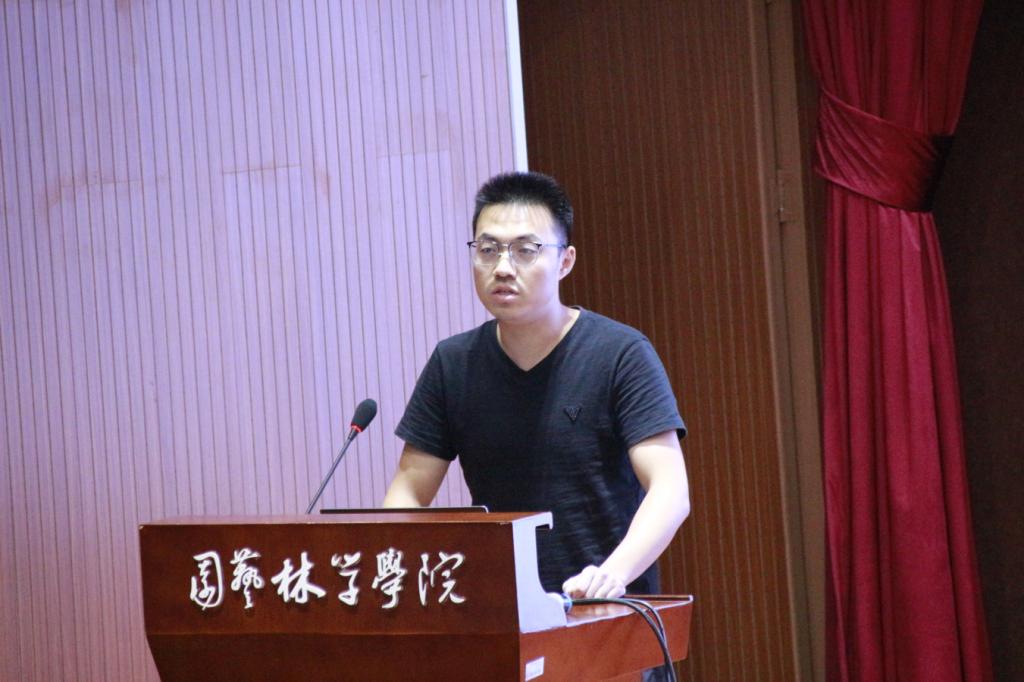 在校研究生代表朱凯杰同学向新生介绍了研究生科研与生活,朱凯杰以“激发科研兴趣,享受科研过程”为主题讲述了本科生到研究生生活的转变以及做好科研的一些建议,他讲到,研究生需要个人的自觉而不是导师的督促,做实验的同时也要注重学术交流。
