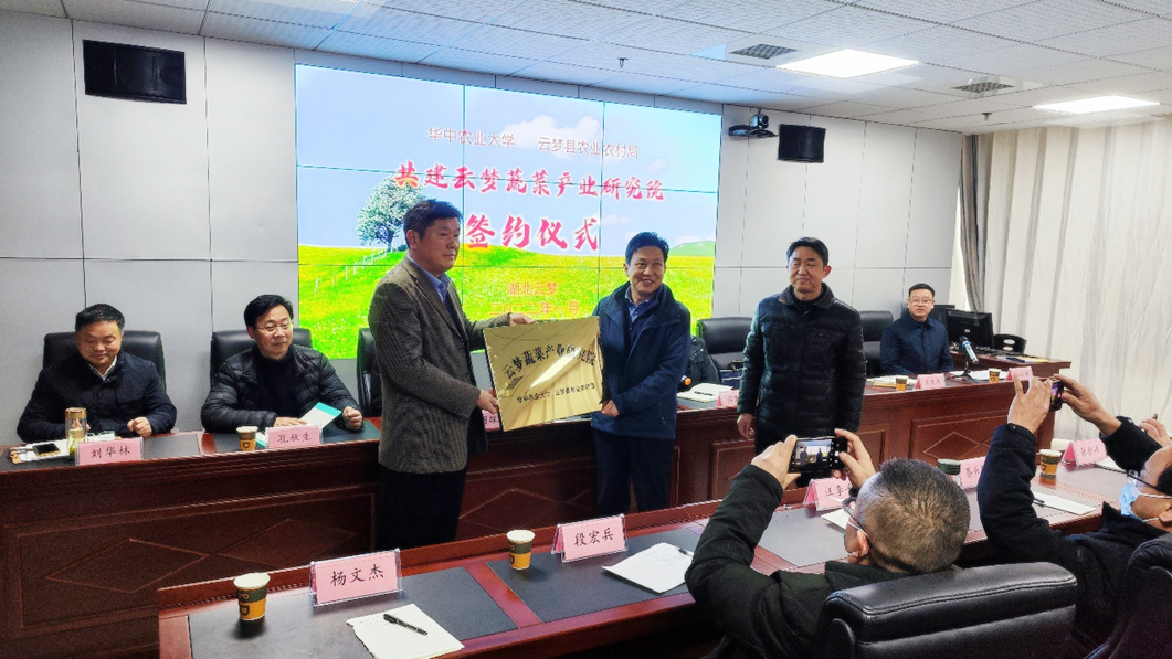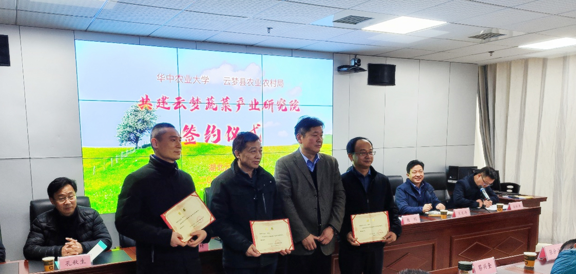 会上,学校与云梦县农业农村局签订了共建“云梦蔬菜产业研究院”协议。省农业农村厅领导、云梦县领导共同为“云梦蔬菜产业研究院”授牌。聘任云梦县农业农村局副局长倪三毛和ok138cn太阳集团宋波涛教授为首届研究院院长。聘任湖北省蔬菜办公室主任袁尚勇、湖北省农技推广总站研究员羿国香和我校ok138cn太阳集团529汪李平教授为产业顾问。