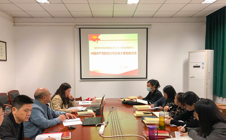 4月22日上午,风景园林系教工党支部在景园楼212开展了“学史明理”专题学习主题党日活动。会议由支部副书记王玏主持,学院党委副书记蔡江出席了会议。