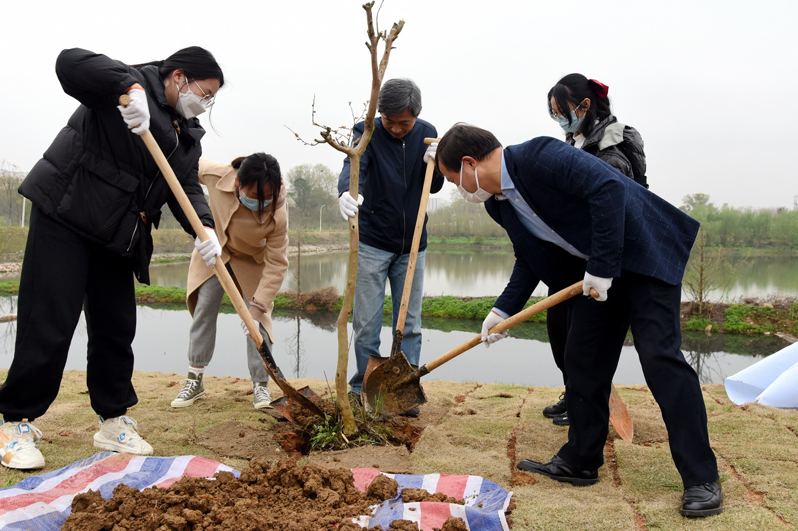 南湖新闻网讯(记者 川竹)春风拂绿,万象盎然。3月18日,我校在香樟路与学府路交叉口野芷湖绿道旁开展植树活动。校领导高翅、廖济忠、王建鸿、郭刚奇,校绿化工作委员会成员,青年教师代表和学生代表等40余人参加了植树活动。