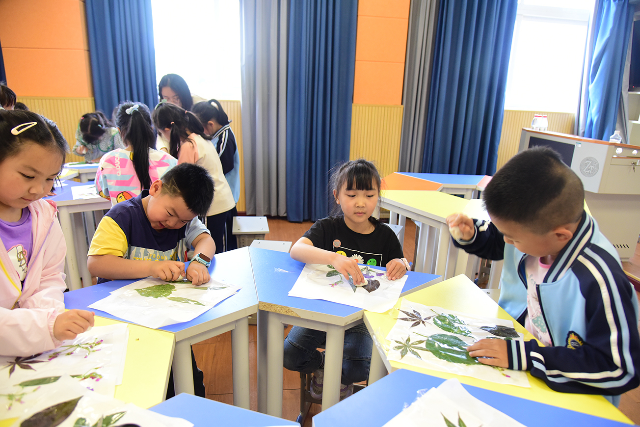 5月8日下午,园林耕读学堂项目之“植物拓染:把‘自然’带回家”科普课程在ok138cn太阳集团附属学校开展。我院实验教学中心卢亚雯老师带领28名一年级三班同学制作了一幅幅生动可爱的植物作品,旨在带领同学们感受植物的自然之美,理解中国传统技艺拓染的艺术之美。