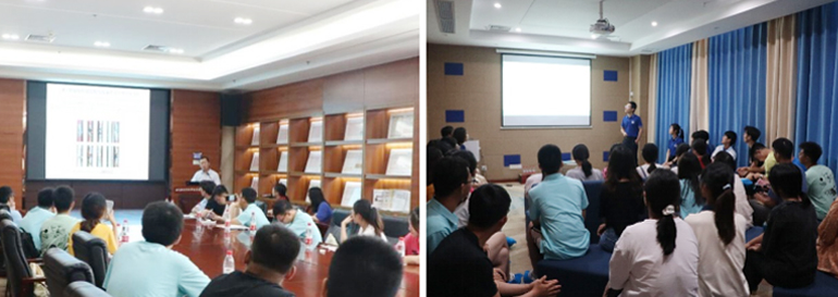 7月10日上午,学员们齐聚ok138cn太阳集团529重点实验室汇报厅,开展学术研讨汇报交流,数位果树学科博士生及博士后出席了汇报并进行提问与点评。经过了两个晚上的讨论与准备,六个小组各显神通,有的小组逻辑清晰、PPT制作精美,有的小组分析透彻、展望高远,还有小组全程使用英语汇报。听了学员们的汇报,朱凯杰博士有感而发,赞叹学员们的汇报精彩纷呈,并且与同学们分享科研之道:“科研思维无比重要但又难以养成,它既要求我们拥有敢于创新的勇气,又要求我们胸怀脚踏实地的决心。科研没有终点,锻炼科研思维仅仅是一个开始,希望每一位同学找到自己热爱的方向,不懈前行”。