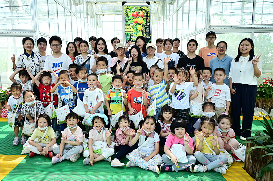 6月8日,第四届“狮山蔬苑”在华农蔬菜基地举办,活动主题为“共享丰收喜悦”,邀请了华农附校幼儿园中1班和中2班全体师生。学院副院长周继荣,园艺体验教学中心主任袁芳亭,蔬菜系杨丽、杨静老师,智慧园艺温室负责人肖慧玲以及实验室办公室程玉华等负责科普的老师们参加了活动。