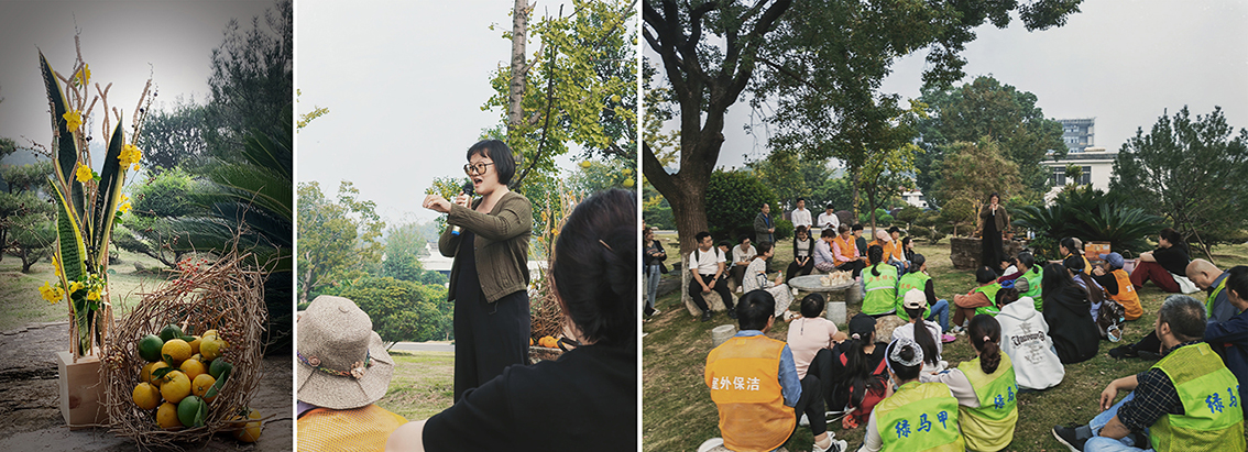 王媛媛老师带着学生们走出教室,来到户外,感受一草一木的自然气息。正逢湖北省第26个“环卫工人节”,学生和环卫工人们组成小组,共同体验自然和园艺的魅力。