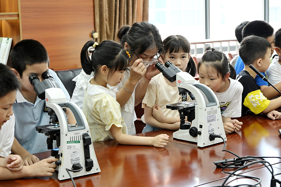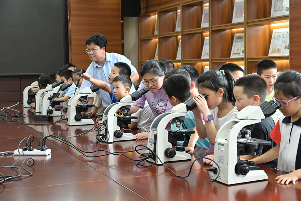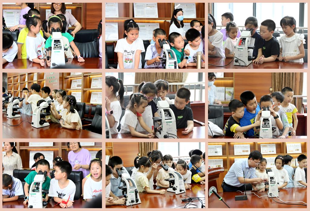 实验室副主任柴利军教授指导小朋友们使用显微镜