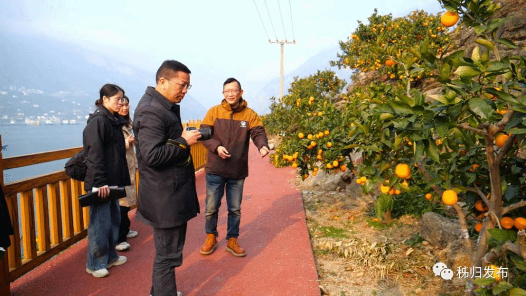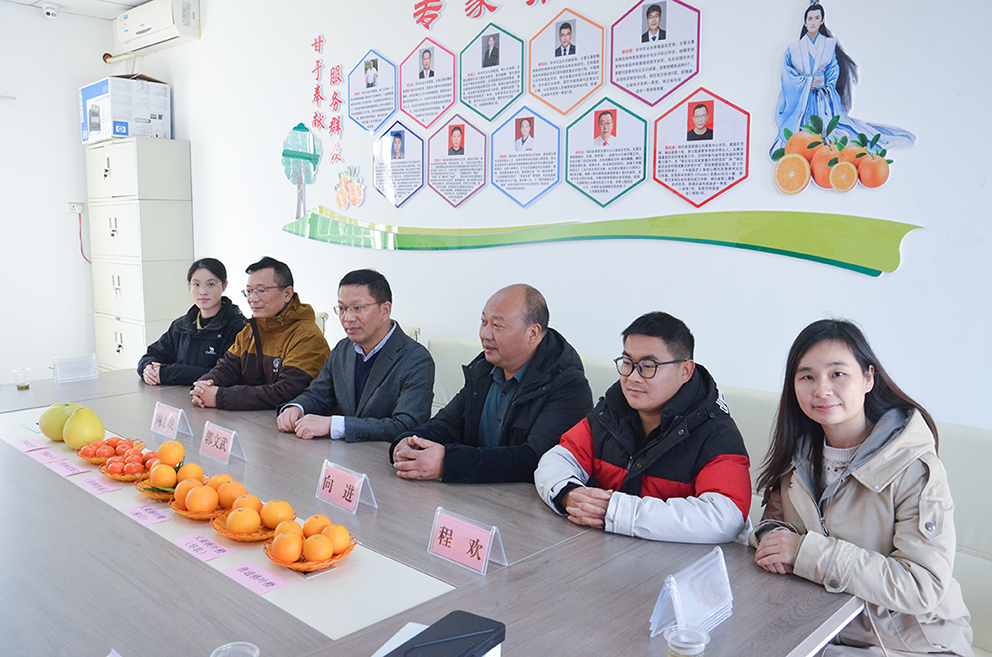 2023年12月27日,郭文武教授、秭归宜昕公司向进董事长、秭归屈原镇公共服务中心主任周志虎、本文作者刘小平等,调研和品鉴柑橘细胞工程新品种—大果桃叶橙(华橙2号)
