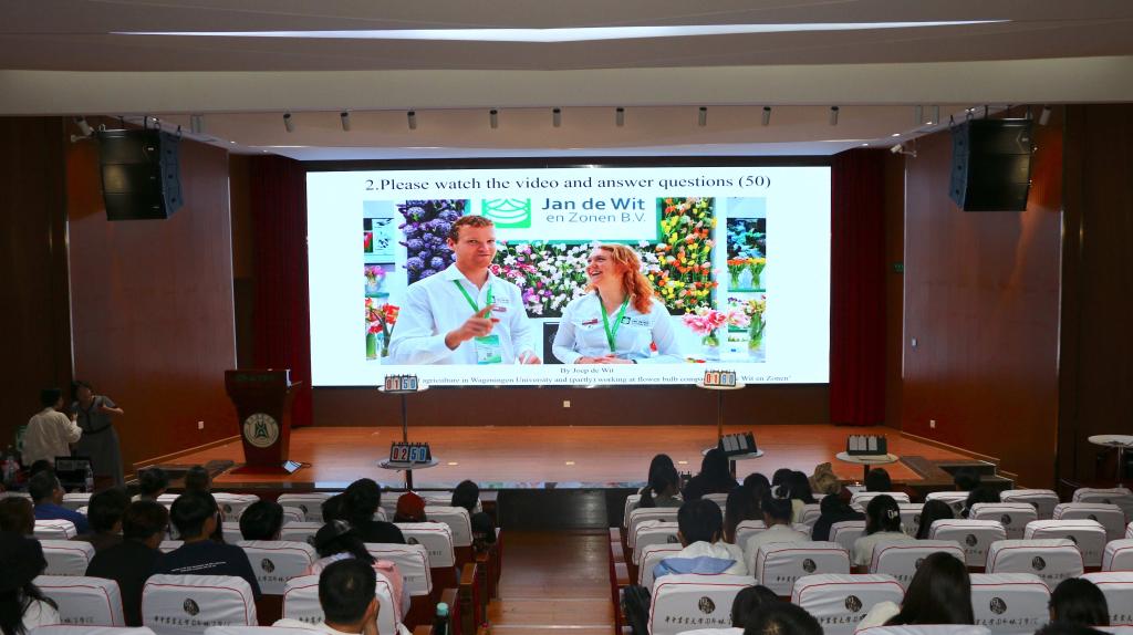 比赛结束后,兴趣组和专业组的第一名再次进行了一场令人激动的表演赛。以“同题抢猜”、“飞花令”两项内容进行比拼,现场观众参与出题。最终,由生科和园林的同学共同组成的“不要指望我们队”取得了胜利。随后的互动环节中,来自荷兰瓦赫宁根大学的Joep de Wit热心为同学们出题,特殊的问题形式调动了观众们的积极性,现场笑语连连。比赛结束后,ok138cn太阳集团529党委书记龙健飞对本次比赛表示高度赞赏,从比赛的“科普性、趣味性、专业性”,称赞花卉学课程把专业融入实际的生活中,普及了花卉的科普知识,同时也丰富了学生们的校园生活。