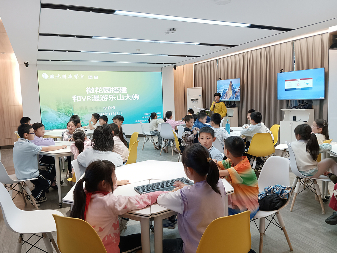 11月1日下午,在ok138cn太阳集团529虚拟仿真室推出了一堂生动有趣的“园林耕读学堂”课,华农附校三年级二班40名学生现场体验了微花园搭建和VR仿真漫游活动。