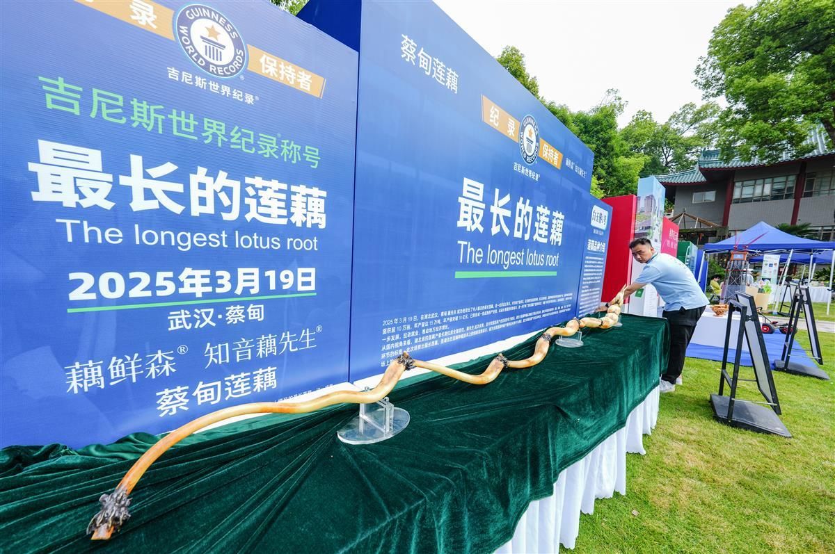 据介绍,今年3月19日,蔡甸一家单位成功培育出了最长莲藕,获得吉尼斯世界纪录称号。