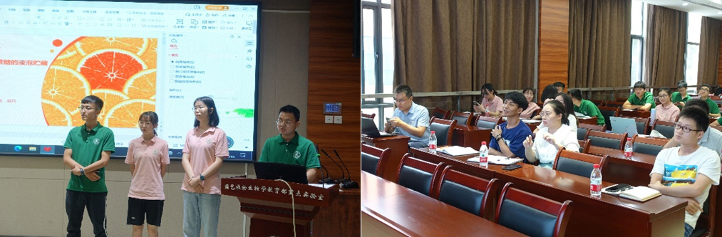 7月16日上午,学员们分成8个小组,分别选择果树系老师们近两年来发表的高水平研究论文进行精读细读,并集合组员们的集体智慧,以PPT形式展示汇报了研究结果及心得体会。报告过程中,学员们自信满满,声音洪亮,思路清晰,现场活跃有序。学员们通过文献阅读和报告PPT制作提高了团队分工合作意识,结合评委老师们的现场指点,了解了科研PPT的制作技巧、课题该如何立项以及如何用创新性思维解决关键科学技术问题,激发了他们探索未知领域的热情和对科研的兴趣。